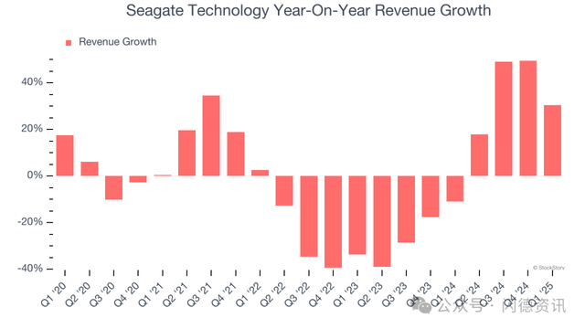 连续四个季度增长,这意味着希捷科技正处于周期的中期,典型的上升周期通常持续8-10个季度。