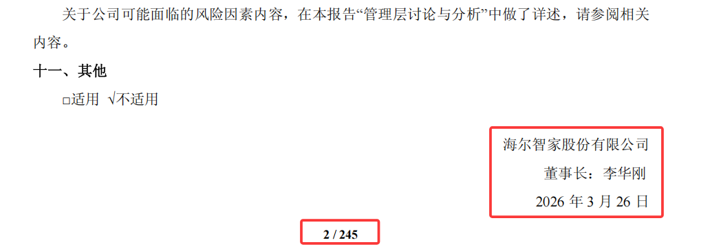 观察海尔智家2024年报,确实董事长落款位置和2025年有明显不同,其它问题也没有出现。