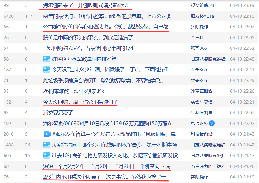 股吧里,部分投资者难掩对海尔智家的失望情绪。