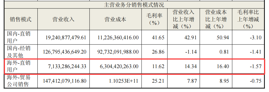 一方面,海尔智家海外直销模式毛利率不足12%,与国内直销约42%的毛利水平差距巨大。