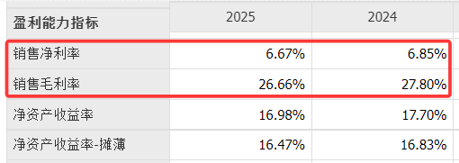 此外,海尔智家的毛利率、净利率双降,盈利能力也面临考验。财报显示,2025年公司毛利率为26.66%,同比下降1.14个百分点;净利率为6.67%,同比下降0.18个百分点。
