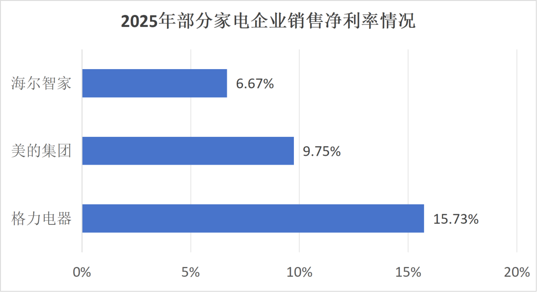 值得注意的是,与竞争对手相比,海尔智家的净利率水平明显偏低。美的集团2025年净利率约10%,格力电器同期净利率约16%,而海尔智家全年净利率不足7%。